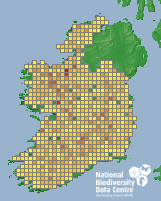 Distribution of the number of records within each 10km grid square (ITM).Marine Map - 50Km