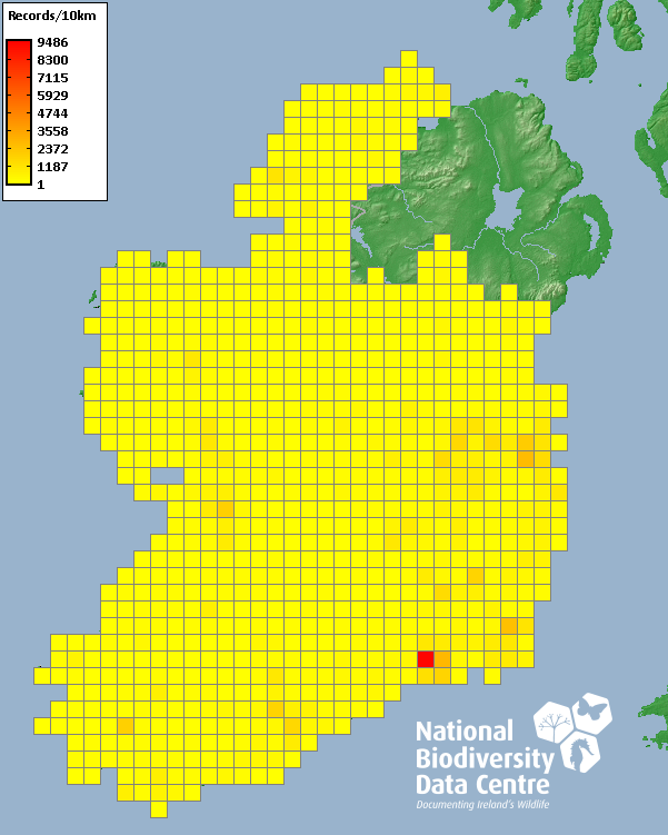 Data are casual records sent in by the public to the National Biodiversity Data Centre.