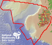 Distribution of the number of records within each 10km grid square (ITM).Marine Map - 50Km