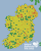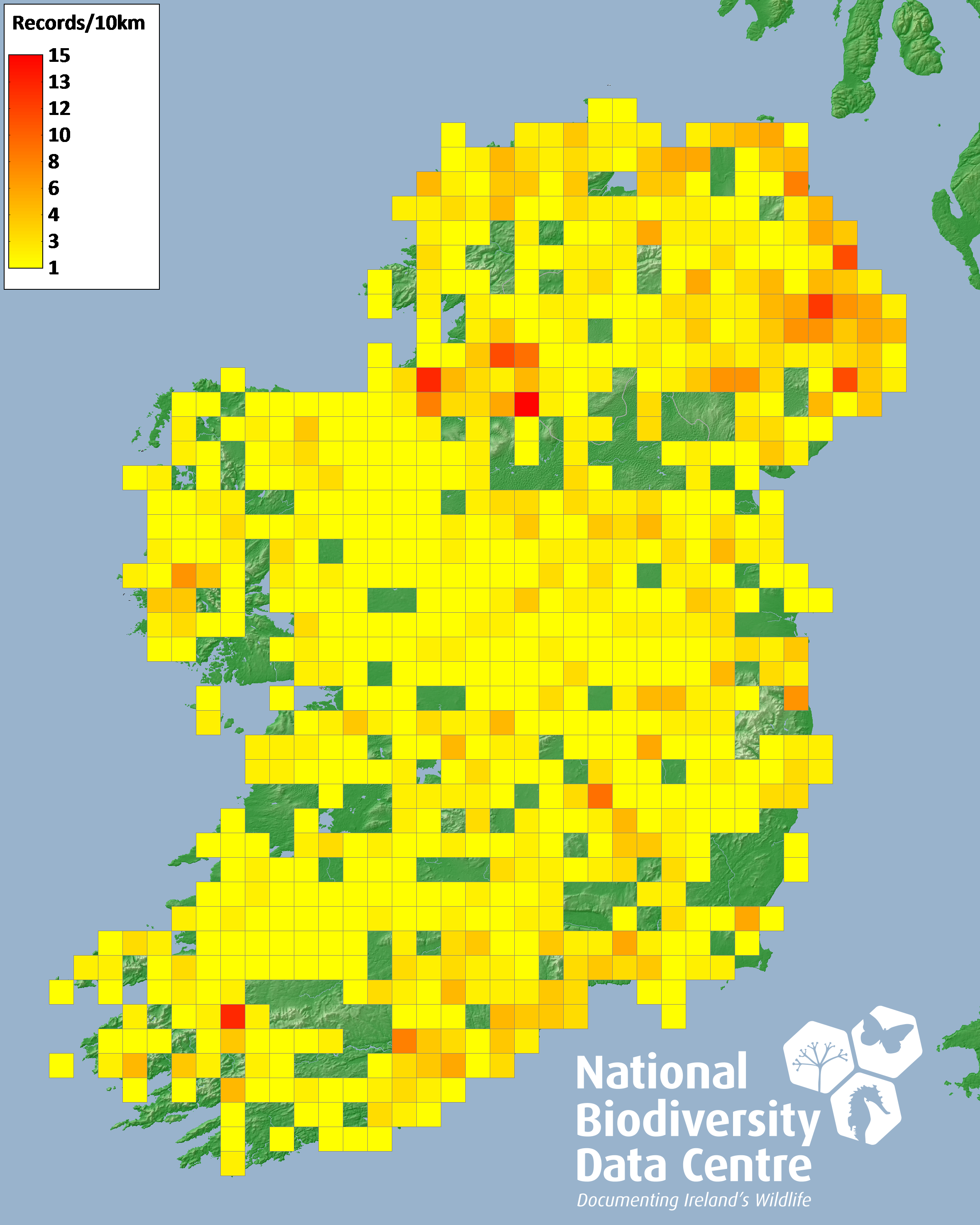 Distribution of the number of records recorded within each 10km grid square (ITM).Marine Map - 50km