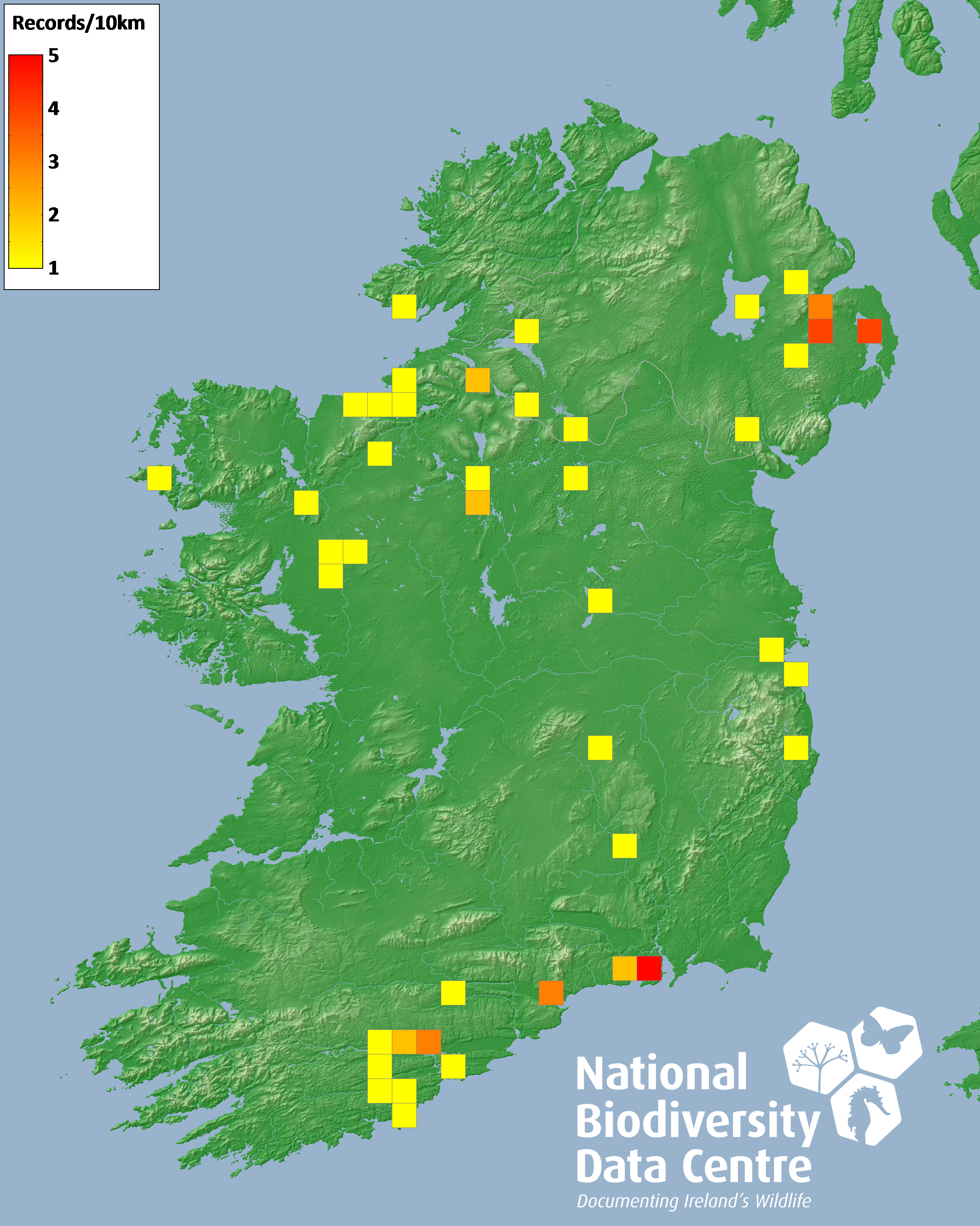Distribution of the number of records recorded within each 10km grid square (ITM).Marine Map - 50km