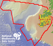Distribution of the number of records recorded within each 10km grid square (ITM).Marine Map - 50km