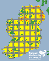 Distribution of the number of records recorded within each 10km grid square (ITM).Marine Map - 50km