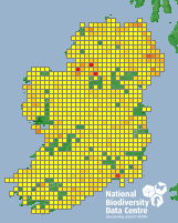 Distribution of the number of records recorded within each 10km grid square (ITM).Marine Map - 50km