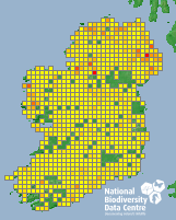 Distribution of the number of records recorded within each 10km grid square (ITM).Marine Map - 50km