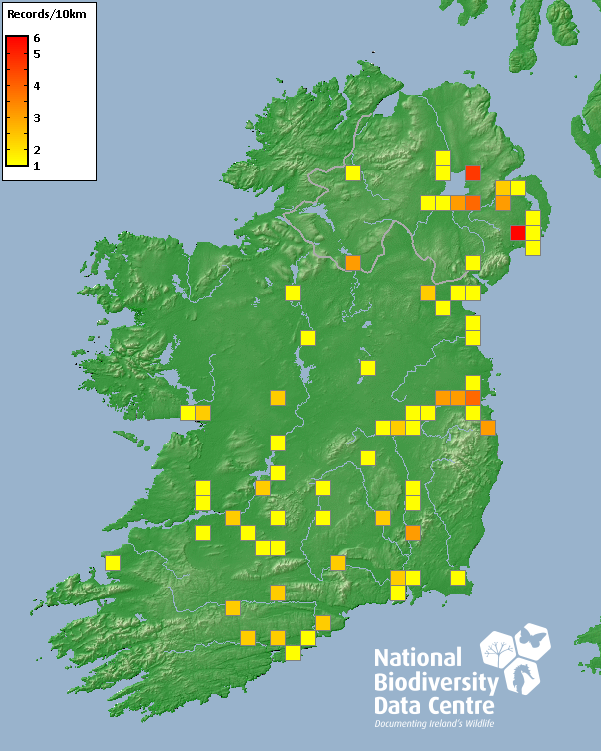 Distribution of the number of records recorded within each 10km grid square (ITM).Marine Map - 50km