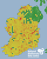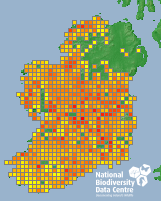 Distribution of the number of records within each 10km grid square (ITM).Marine Map - 50Km