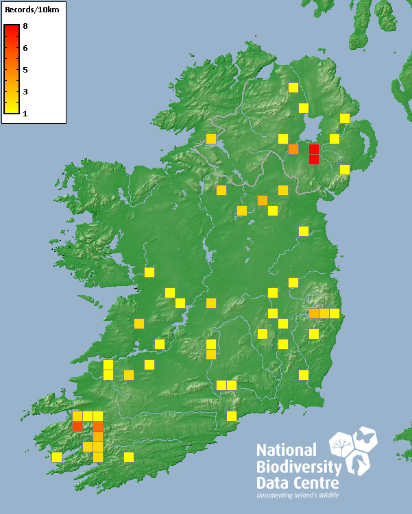 Distribution of the number of records recorded within each 10km grid square (ITM).Marine Map - 50km