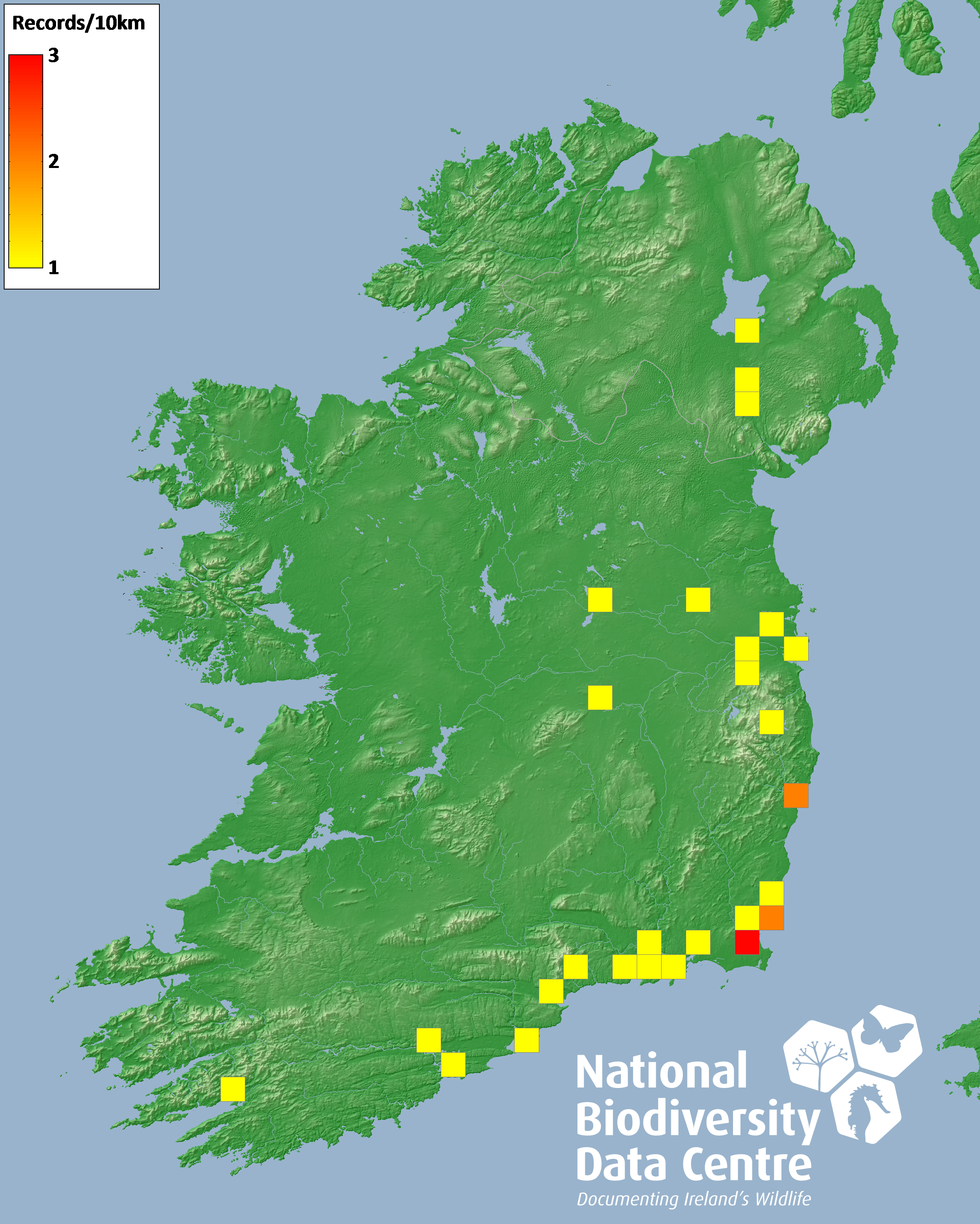 Distribution of the number of records recorded within each 10km grid square (ITM).Marine Map - 50km