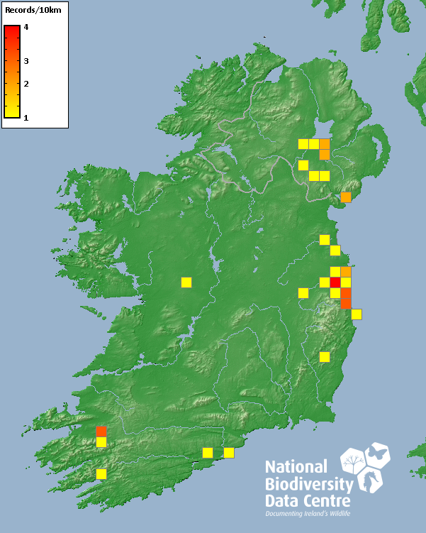 Distribution of the number of records recorded within each 10km grid square (ITM).Marine Map - 50km
