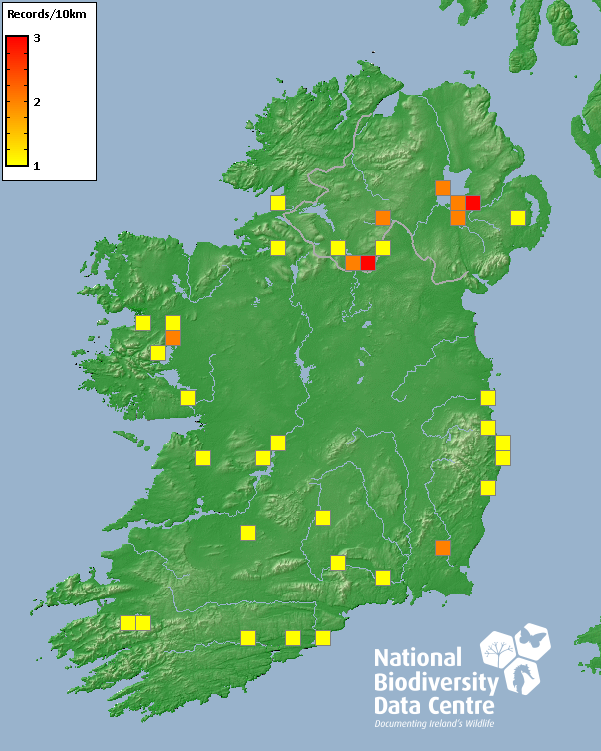 Distribution of the number of records recorded within each 10km grid square (ITM).Marine Map - 50km
