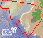 Distribution of the number of records within each 10km grid square (ITM).Marine Map - 50Km