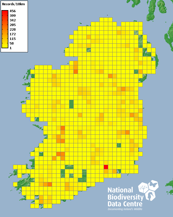 Distribution of the number of records recorded within each 10km grid square (ITM).Marine Map - 50km