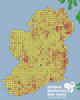 Distribution of the number of records within each 10km grid square (ITM).Marine Map - 50Km
