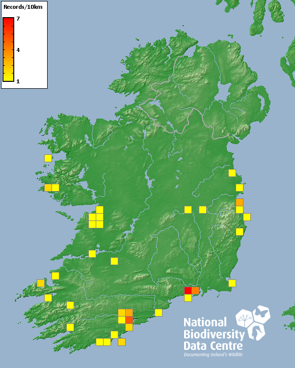 Distribution of the number of records recorded within each 10km grid square (ITM).Marine Map - 50km
