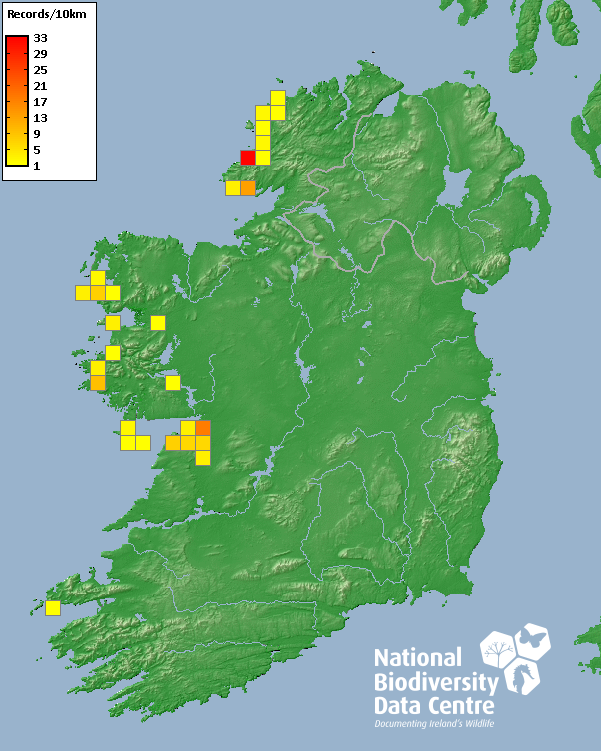 Distribution of the number of records recorded within each 10km grid square (ITM).Marine Map - 50km