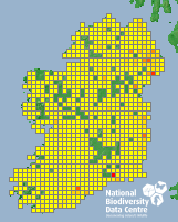 Distribution of the number of records recorded within each 10km grid square (ITM).Marine Map - 50km