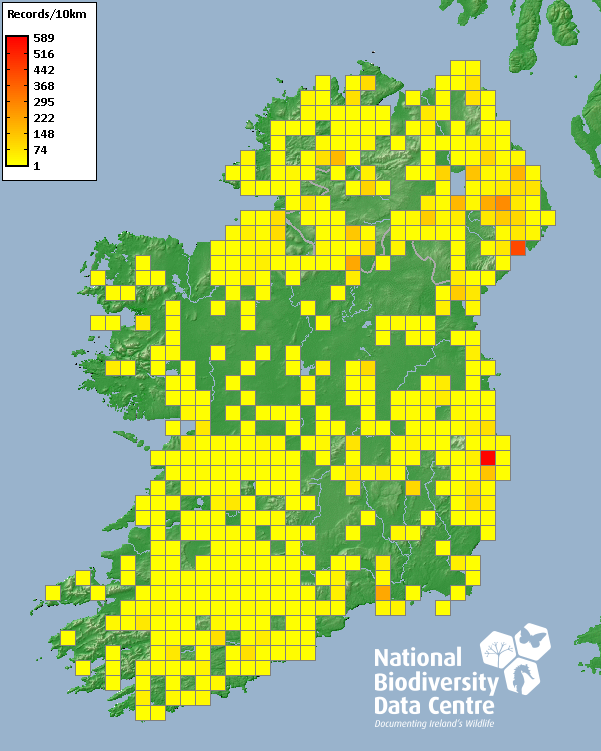 Distribution of the number of records recorded within each 10km grid square (ITM).Marine Map - 50km