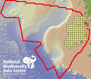 Distribution of the number of records recorded within each 10km grid square (ITM).Marine Map - 50km