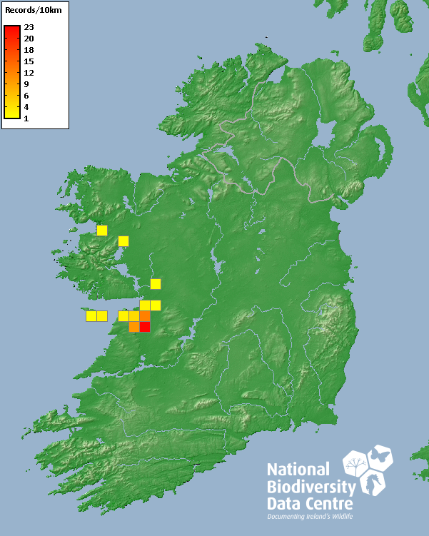 Distribution of the number of records recorded within each 10km grid square (ITM).Marine Map - 50km