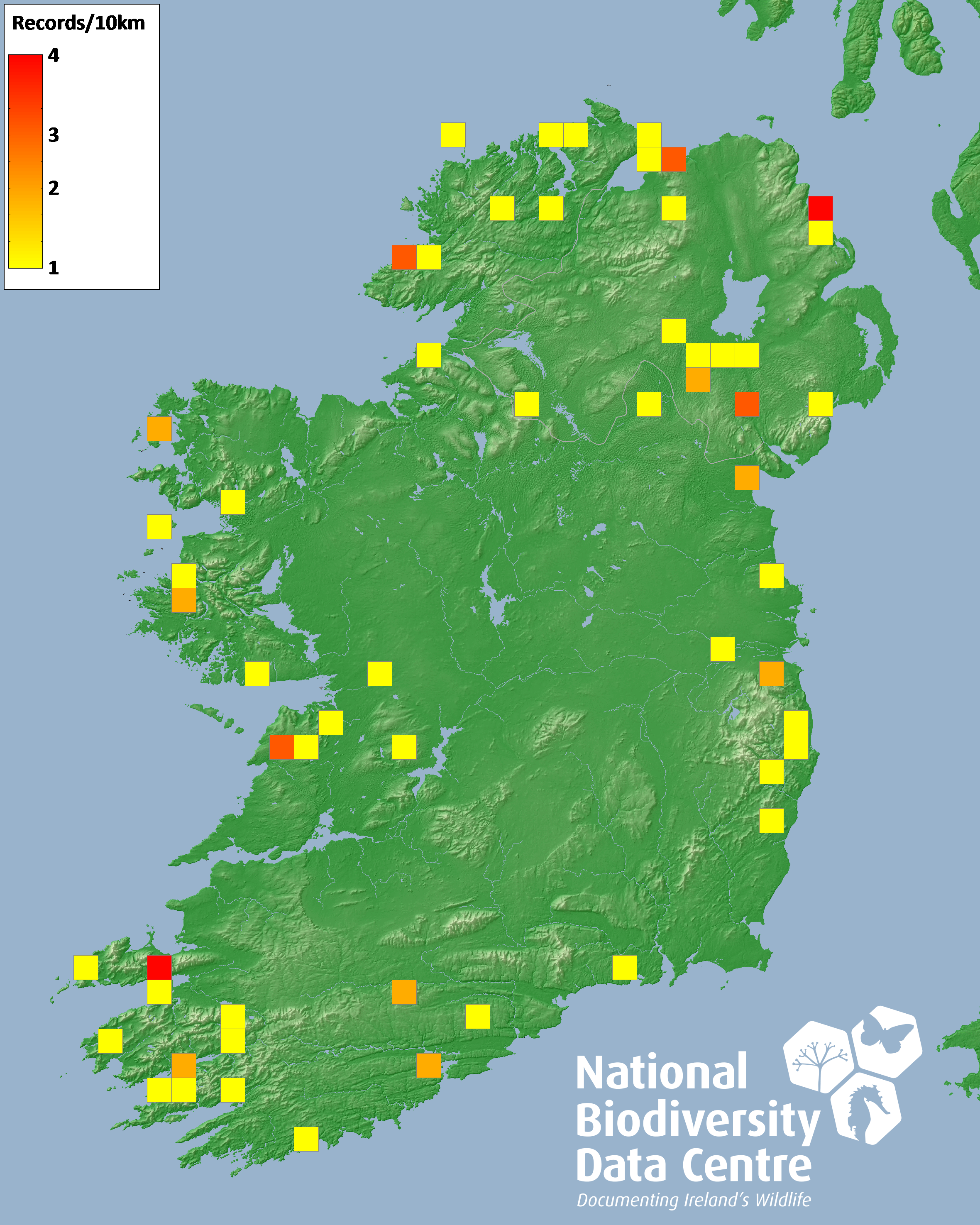 Distribution of the number of records recorded within each 10km grid square (ITM).Marine Map - 50km