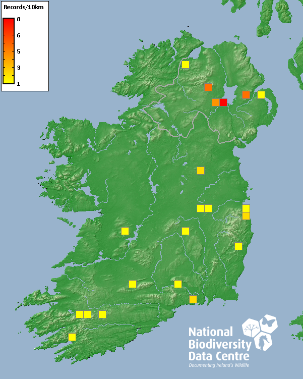Distribution of the number of records recorded within each 10km grid square (ITM).Marine Map - 50km