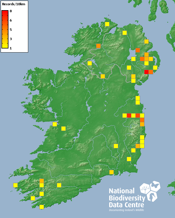 Distribution of the number of records recorded within each 10km grid square (ITM).Marine Map - 50km
