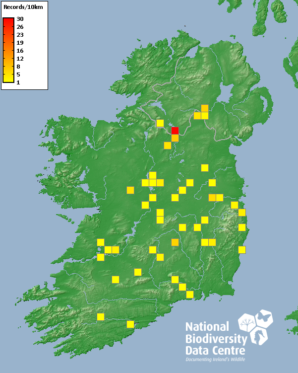 Distribution of the number of records recorded within each 10km grid square (ITM).Marine Map - 50km