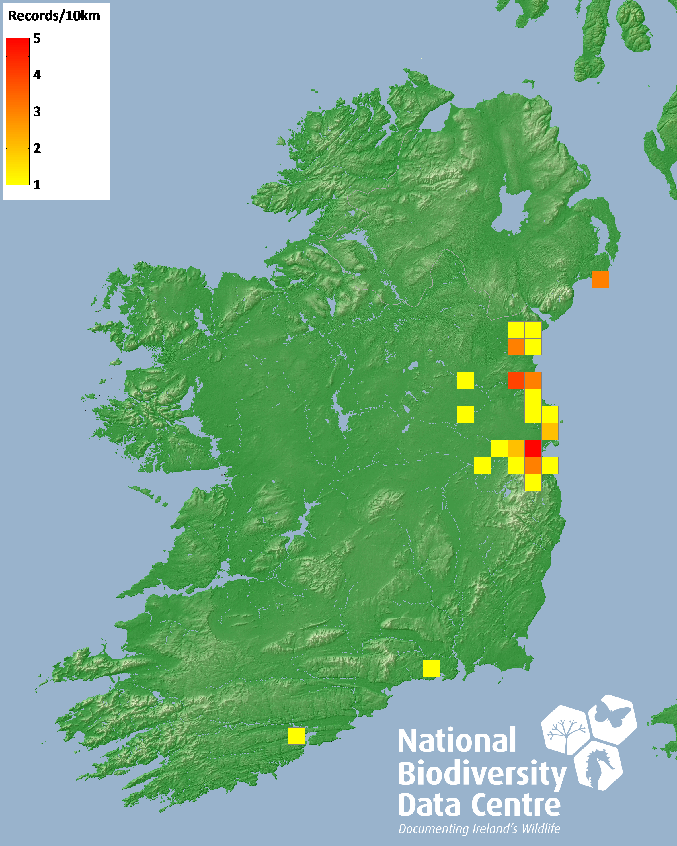 Distribution of the number of records recorded within each 10km grid square (ITM).Marine Map - 50km