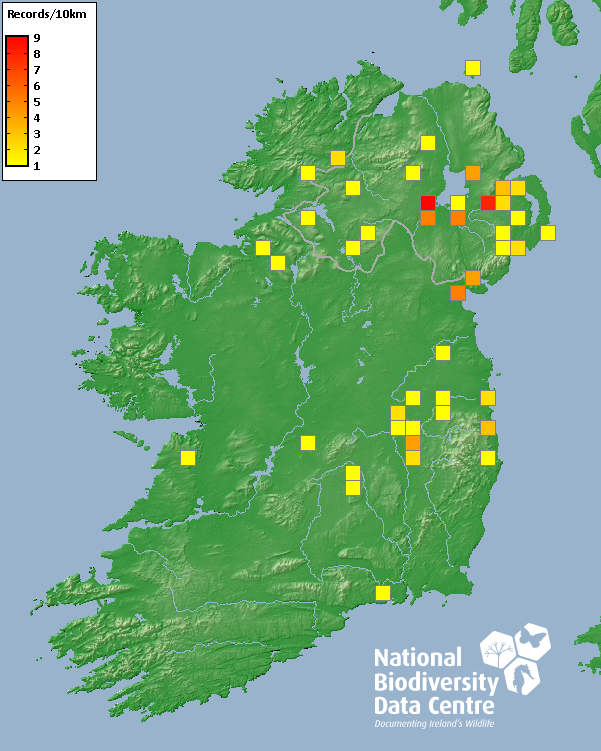 Distribution of the number of records recorded within each 10km grid square (ITM).Marine Map - 50km