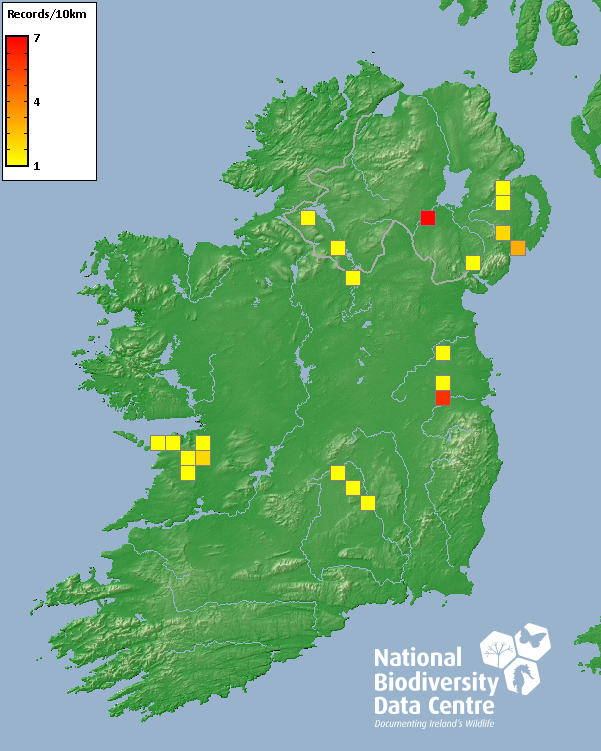 Distribution of the number of records recorded within each 10km grid square (ITM).Marine Map - 50km