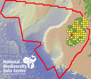Distribution of the number of records recorded within each 10km grid square (ITM).Marine Map - 50km