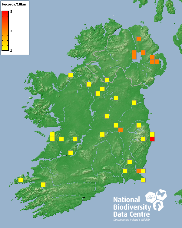 Distribution of the number of records recorded within each 10km grid square (ITM).Marine Map - 50km