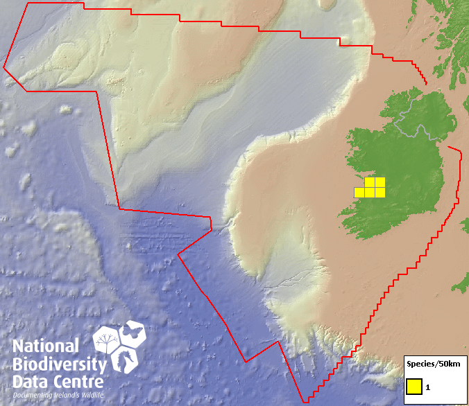Distribution of the number of records within each 10km grid square (ITM).Marine Map - 50Km