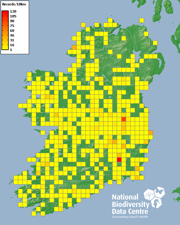 Distribution of the number of records recorded within each 10km grid square (ITM).Marine Map - 50km