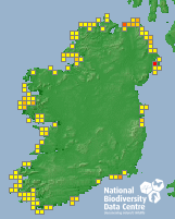 Distribution of the number of records recorded within each 10km grid square (ITM).Marine Map - 50km