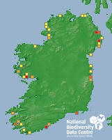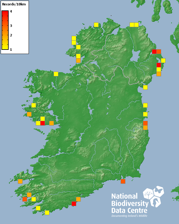 Distribution of the number of records recorded within each 10km grid square (ITM).Marine Map - 50km