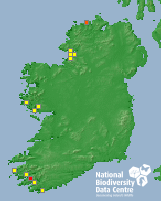 Distribution of the number of records recorded within each 10km grid square (ITM).Marine Map - 50km