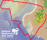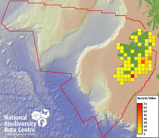 Distribution of the number of records recorded within each 10km grid square (ITM).Marine Map - 50km