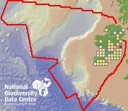 Distribution of the number of records recorded within each 10km grid square (ITM).Marine Map - 50km