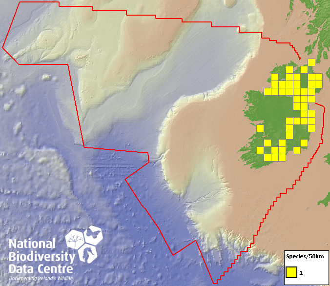 Distribution of the number of records within each 10km grid square (ITM).Marine Map - 50Km