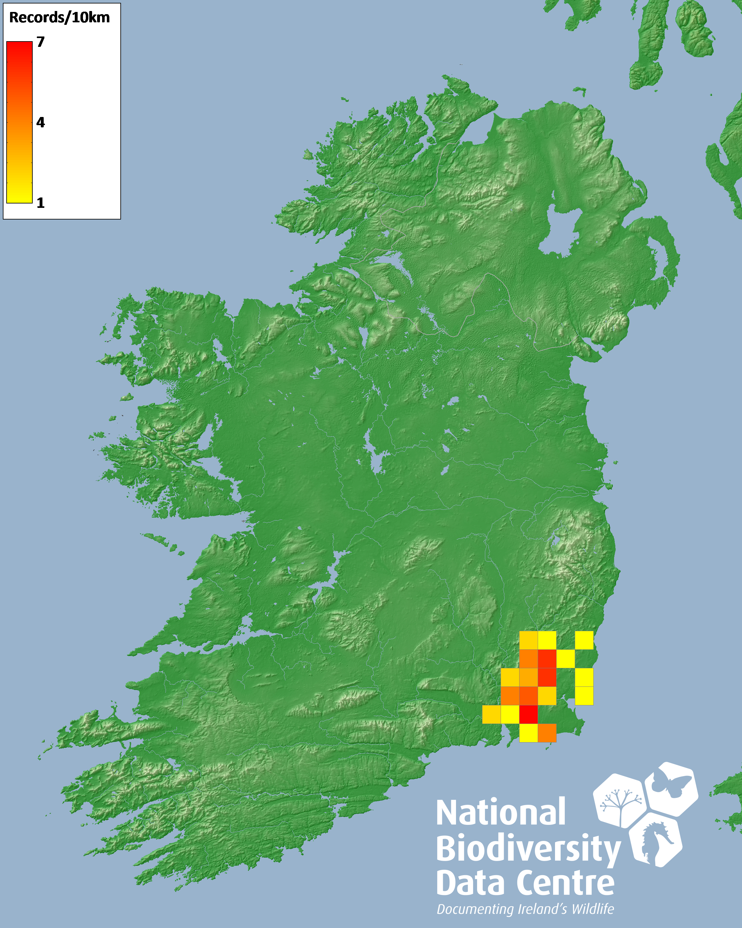 Distribution of the number of records recorded within each 10km grid square (ITM).Marine Map - 50km