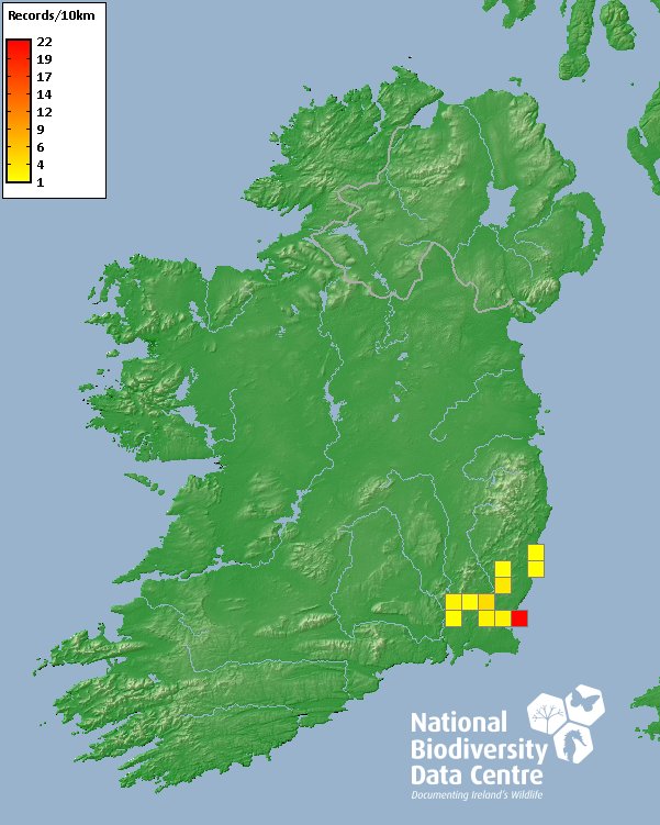 Distribution of the number of records recorded within each 10km grid square (ITM).Marine Map - 50km