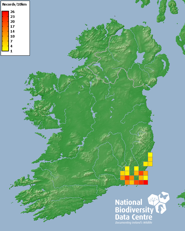 Distribution of the number of records recorded within each 10km grid square (ITM).Marine Map - 50km