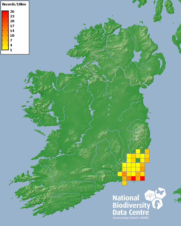Distribution of the number of records recorded within each 10km grid square (ITM).Marine Map - 50km