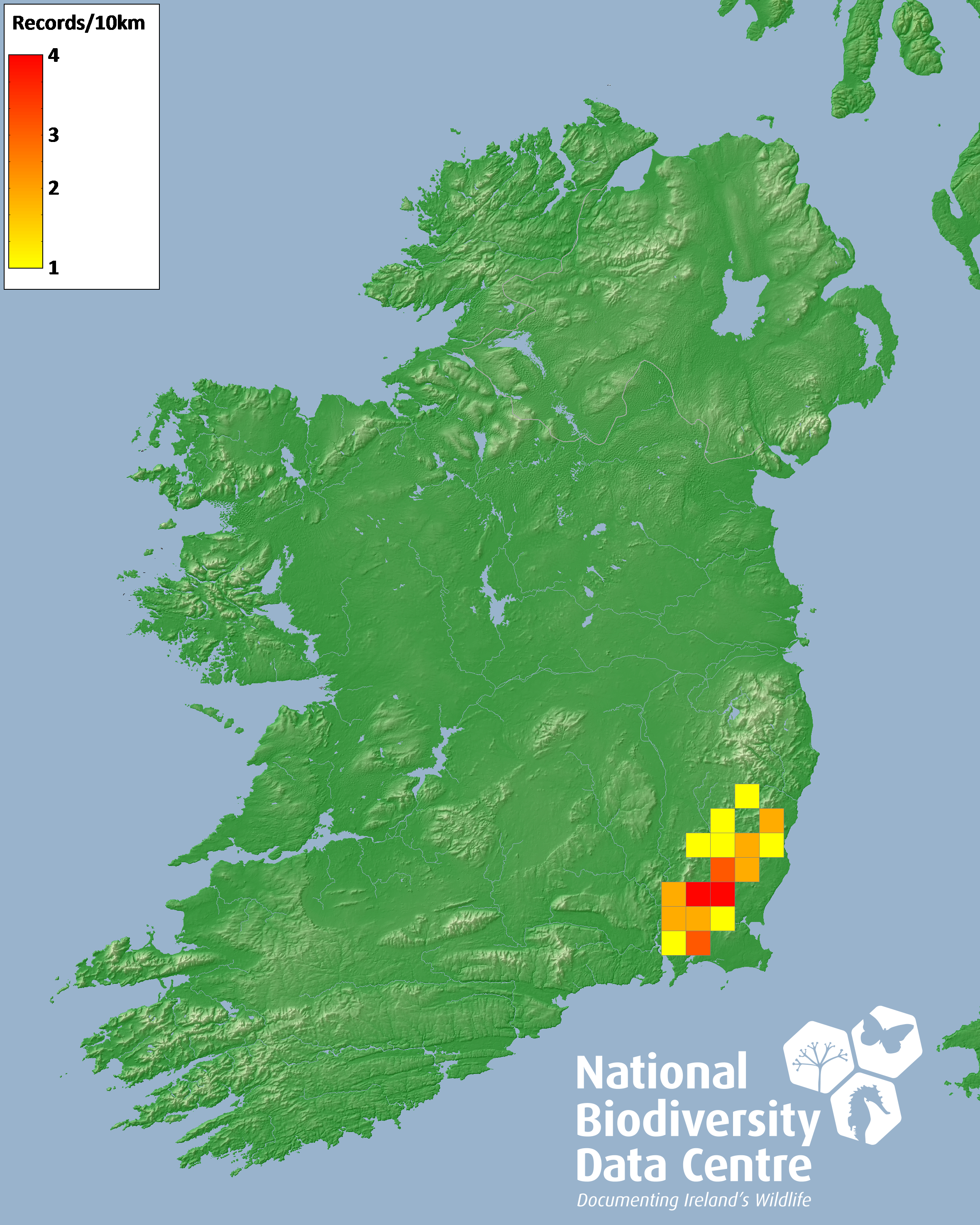 Distribution of the number of records recorded within each 10km grid square (ITM).Marine Map - 50km