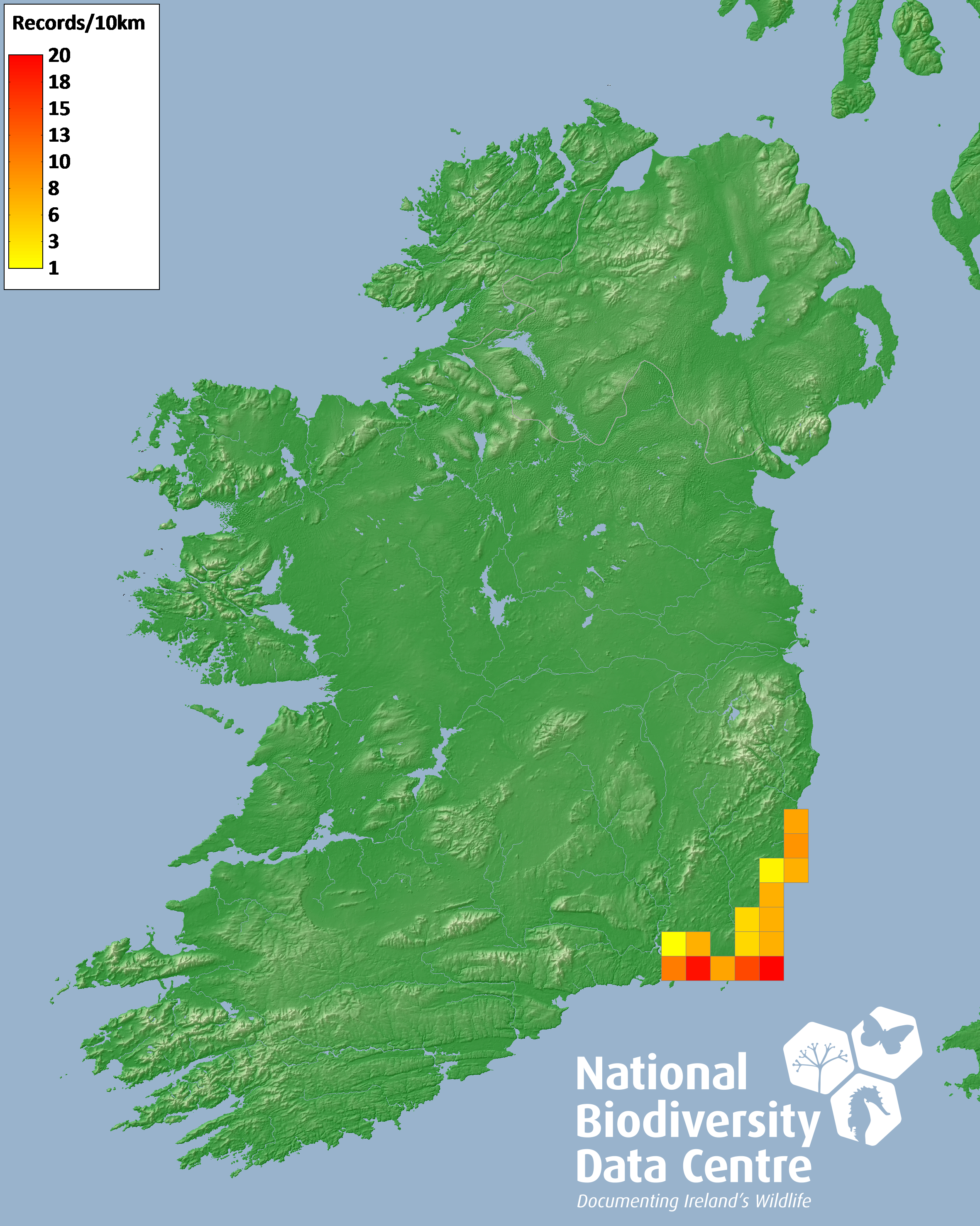 Distribution of the number of records recorded within each 10km grid square (ITM).Marine Map - 50km