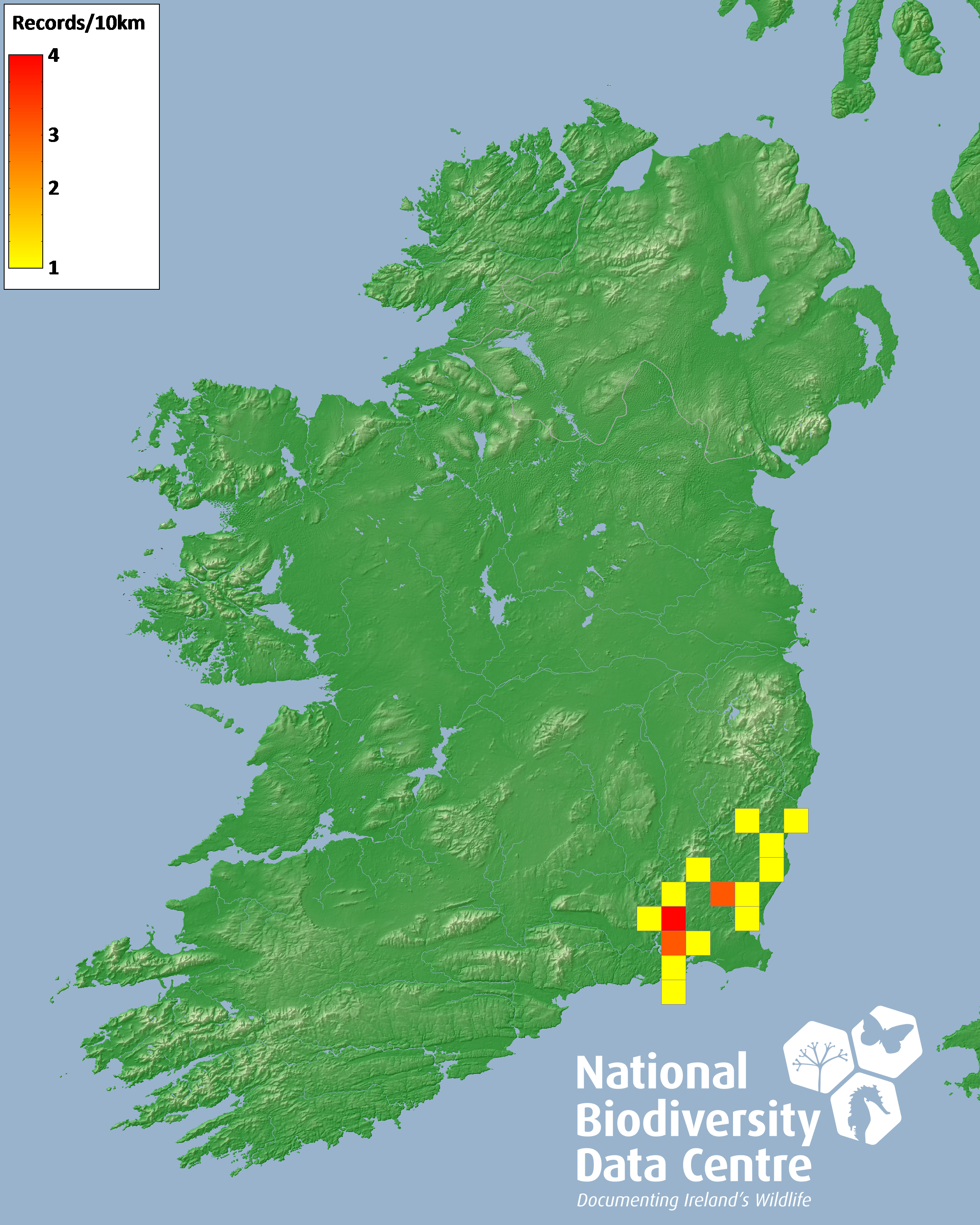 Distribution of the number of records recorded within each 10km grid square (ITM).Marine Map - 50km