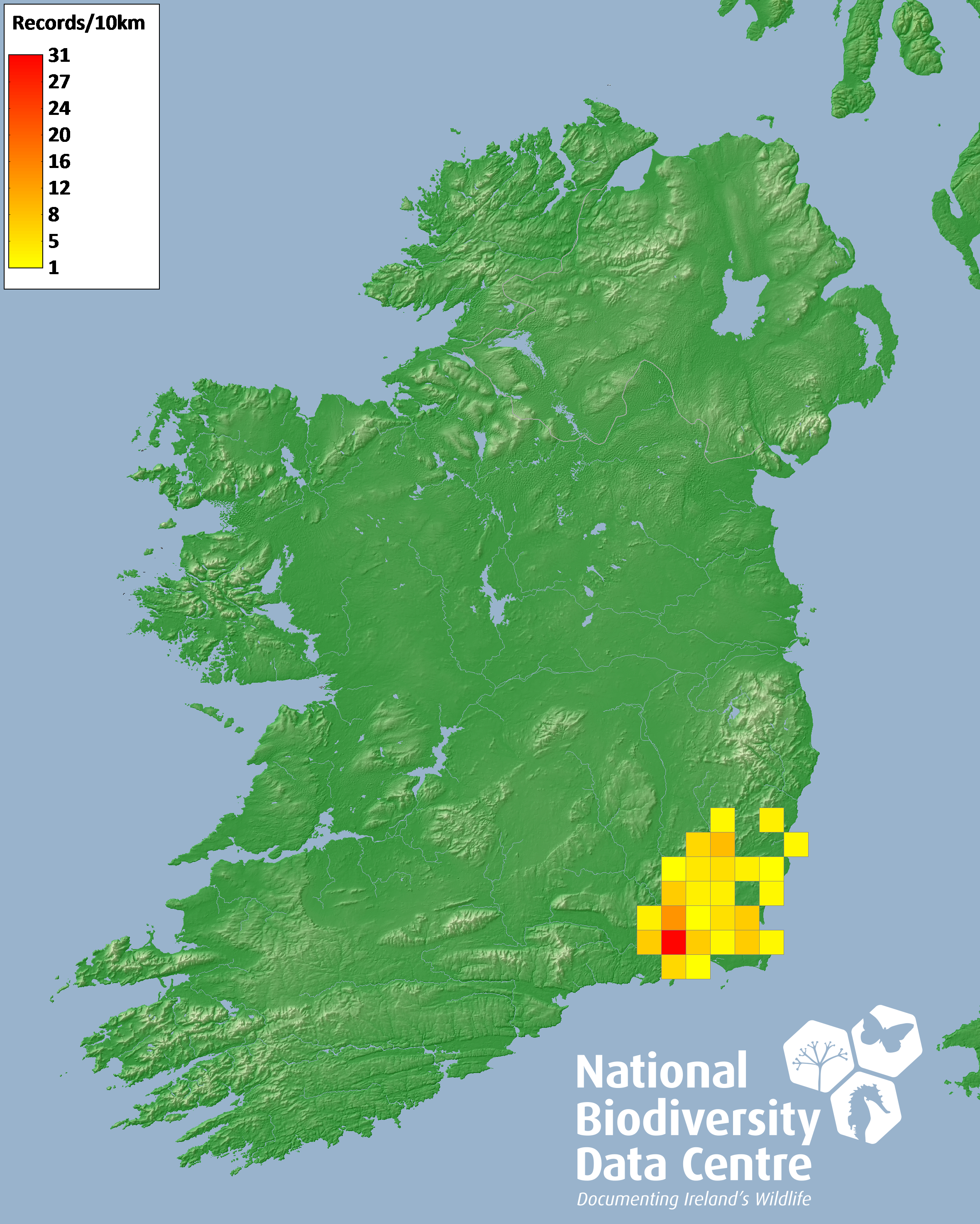 Distribution of the number of records recorded within each 10km grid square (ITM).Marine Map - 50km