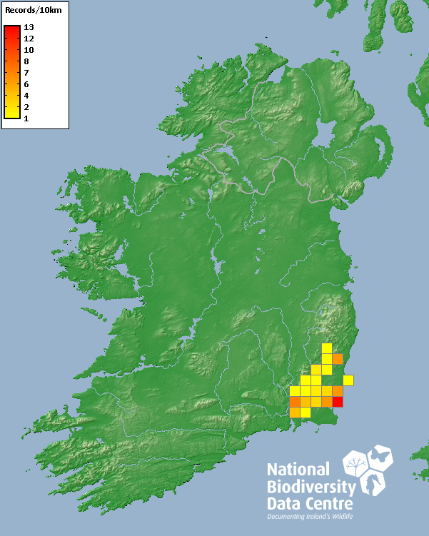 Distribution of the number of records recorded within each 10km grid square (ITM).Marine Map - 50km